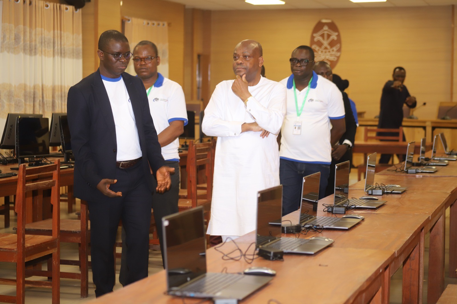 D’abord la tente climatisée destinée au dépouillement des bulletins de vote a été inspectée pour vérifier son aménagement et son confort, gage de conditions de travail optimales pour les agents. Ensuite, l’espace de stockage prévu pour accueillir les cantines en provenance de la Commission électorale nationale autonome (CENA) a également retenu son attention. Troisièmement la salle de compilation et de calcul des résultats, a été passée en revue pour s’assurer de la fiabilité des équipements. Enfin, la salle informatique, où seront centralisées et traitées les données électorales, a fait l’objet d’un contrôle minutieux.
