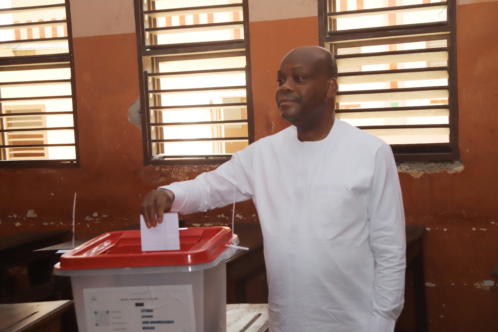 À 10 heures précises, le Président de la Cour constitutionnelle, le Professeur Cossi Dorothé Sossa, a fait son entrée dans la cour du Lycée Technique Coulibaly afin d’accomplir son devoir civique. Après les salutations protocolaires, il a suivi les étapes prévues pour le scrutin et a déposé son bulletin dans l’urne au Poste 3 du centre de vote, situé dans le 6ᵉ arrondissement de Cotonou.